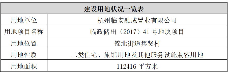 根据管理人向杭州市临安区建设档案与信息中心调取的《浙江省企业投资项目备案(赋码)信息表》显示,融成公司负责开发的项目名称为“临政储出(2017)41号地块”,具体立项备案情况具体如下: